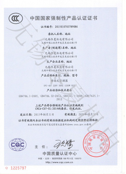 近日,星空体育·星空官方网站-星空体育(中国)的移动工业冷气机、暖风机产品7个型号取得了中国质量认证中心颁发的3C强制认证证书。